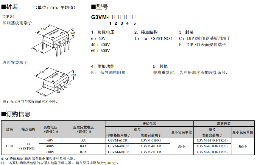 G3VM-61CR1/61FR1 MOS FET歐姆龍繼電器